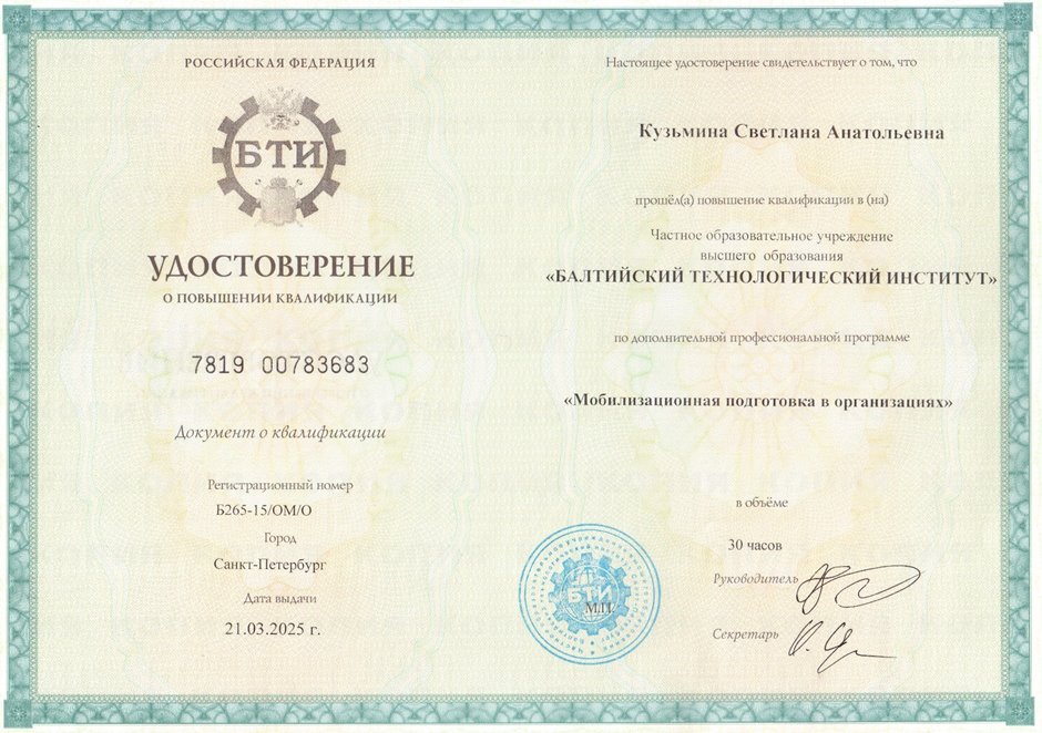 2024-2025 Кузьмина С.А. (Удостоверение повышение квалификации Мобилизационная подготовка)