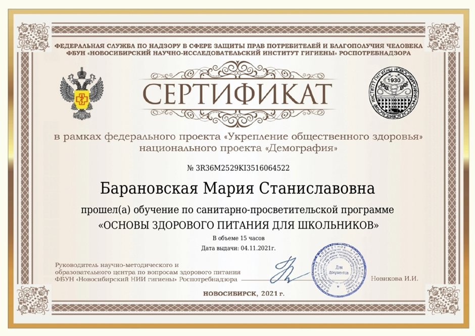 2021-2022 Барановская М.С. (Сертификат Здоровое питание)