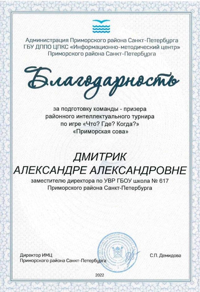 2022-2023 Дмитрик А.А. (Благодарность Приморская сова)