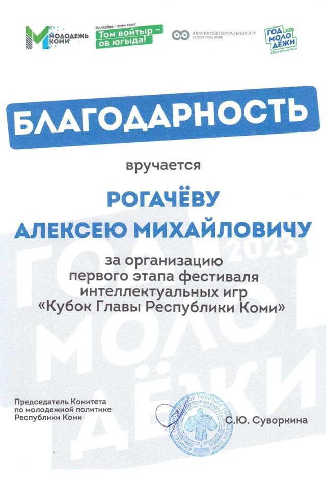 2022-2023 Рогачев А.М. (Благодарность интеллектуальные игры Республики Коми)