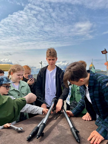 В университетском планетарии юные астрономы провели практические наблюдения с телескопом – поднялись на крышу, собрали оборудование:
