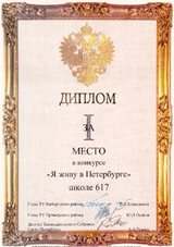 - Первое место школы в конкурсе-фестивале "Я живу в Петербурге"