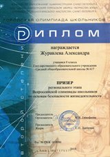 Журавлева Александра и Арутюнян Эмиль награждены дипломами городской олимпиады по ОБЖ и экологии в рамках Всероссийской олимпады школьников.