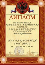 Школа 617 - победитель фестиваля сайтов образовательных учреждений Приморского района.