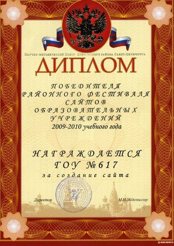 Школа 617 стала победителем фестиваля сайтов образовательных учреждений Приморского района.