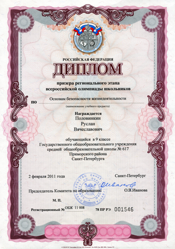 | 2 | ОБЖ | Половинкин Руслан | 9л | Никулина С.В. | диплом призера региональной олимпиады |