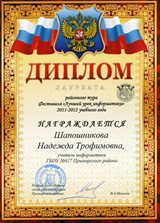 Лауреат районного тура Фестиваля "Лучший урок информатики 2011-2012 учебного года".