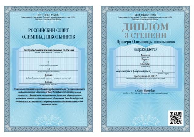 | Интернет-олимпиада школьников по физике | Алешков Кирилл 7л | диплом 3 степени |