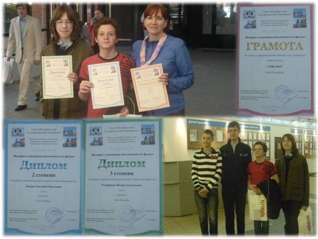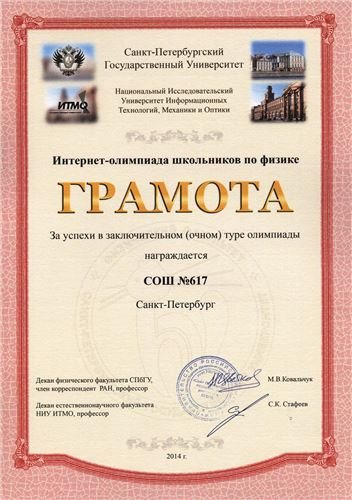 Ученики школы № 617 награждены дипломами по физике, математике, астрономии в олимпиадах 2013/2014 учебного года: