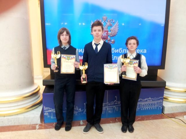 Три ученика школы, ставшие победителями сразу в нескольких олимпиадах, были приглашены на торжественную церемонию награждения «Звёздный час – 2014», которая состоялась в Президентской библиотеке.