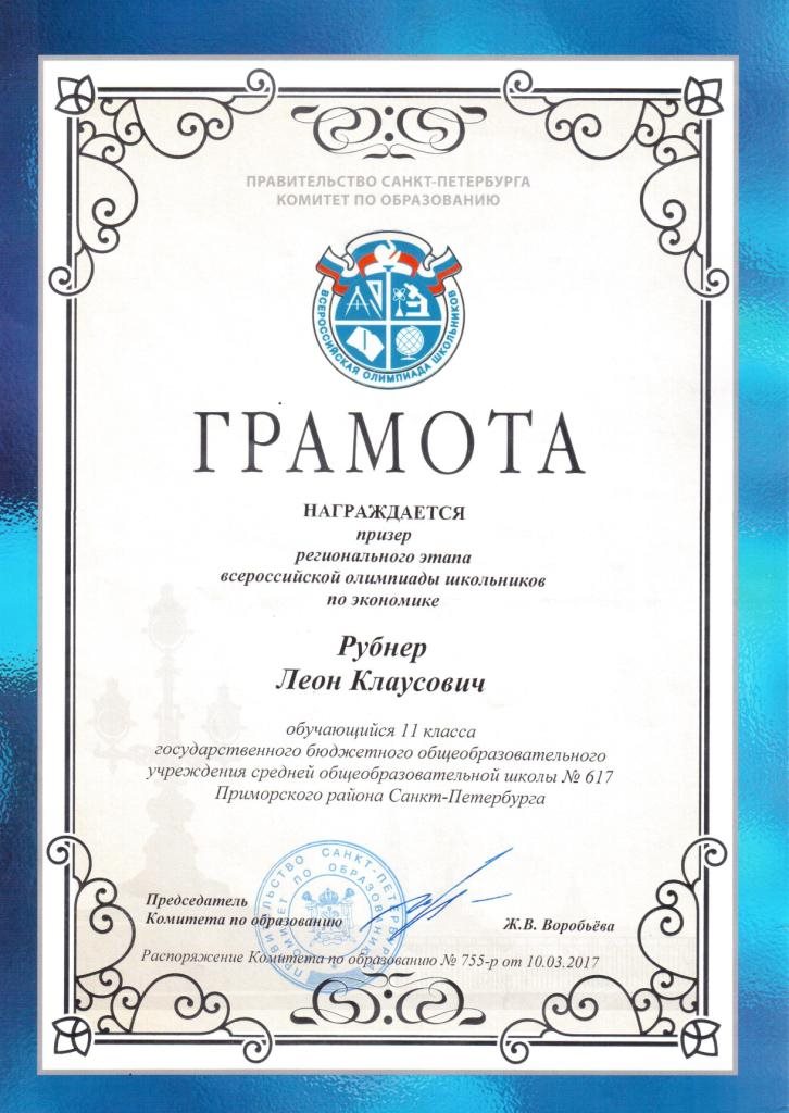 В 2016-2017 учебном году он стал призером регионального этапа всероссийской олимпиады школьников по экономике.