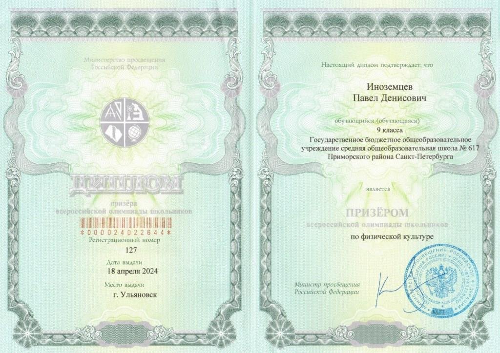4. ПАВЕЛ ИНОЗЕМЦЕВ, 9 класс, школа 617