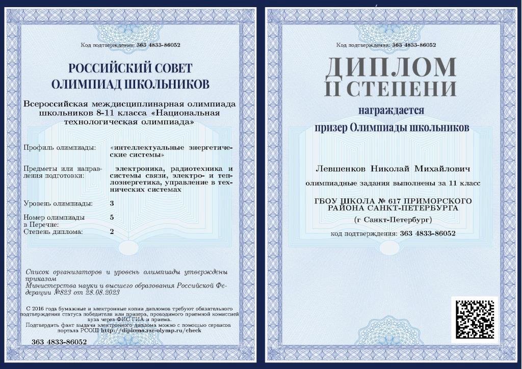 | Левшенков Николай | 11ли | Национальная технологическая олимпиада | ИЭС |