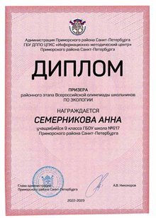 По окончании 11 класса Анна одновременно с аттестатом получила сертификат о первой профессии "Лаборант химического анализа". Также она успешно участвовала во Всероссийской олимпиаде школьников. Имеет дипломы по Экологии, Искусству (МХК), Основам безопасности и защиты Родины.