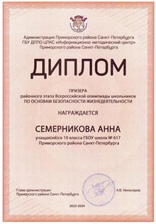 Выпускница химико-биологического класса 2025 года Семерникова Анна окончила школу с серебряной медалью, подтвердив высокий уровень образования результатами ЕГЭ.