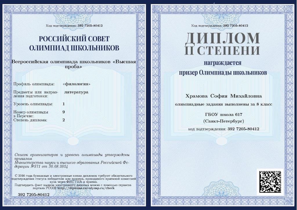 | Храмова София | 8л1 | Всеросссийская олимпиада школьников "Высшая проба" | Богданова Н.В. | филология |