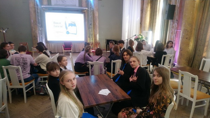 Наша интеллектуальная сборная в составе учениц 6л Мороз Екатерины, Пироговой Ольги, 10ам Поздняковой Анастасии, Марьясовой Арины и учеников 10ли класса Васильева Владимира, Кузнецова Артёма приняла участие в городской культурно-образовательной программе "Виват, Гоголь!".