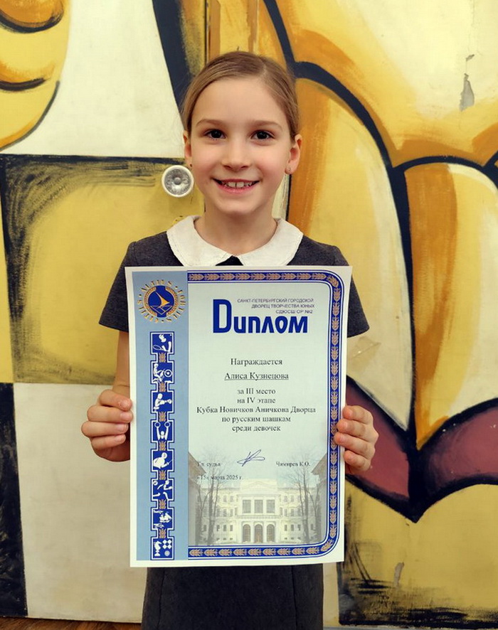 В первые участие в таком турнире приняла участие Алиса Кузнецова ученица 1а класса. Алиса занимается в секции «Шашки» под руководством Екатерины Владимировны Михайловой.