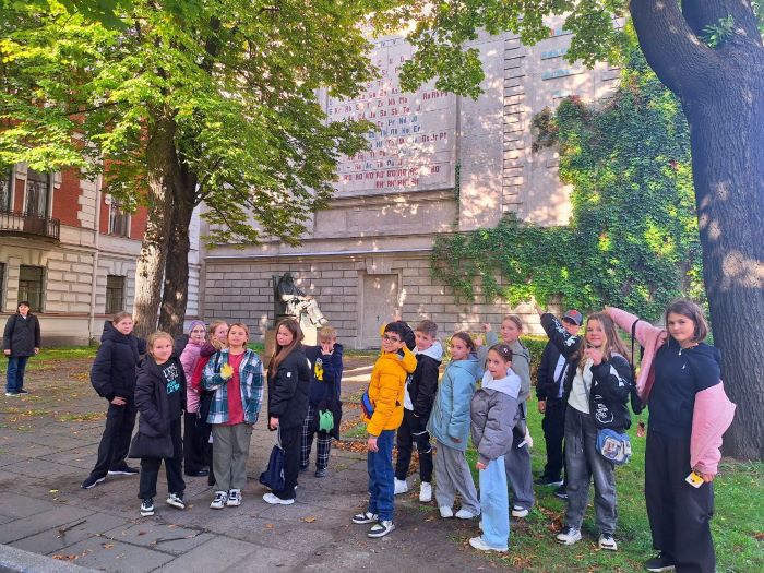 Маршрут путешествия был насыщен историческими и культурными объектами. Ребята увидели уникальную мозаику с периодической таблицей Д.И. Менделеева и узнали о связи великого ученого с Петербургом. Далее их ждала встреча с подлинным верстовым столбом, хранящим память о дорогах Российской империи.