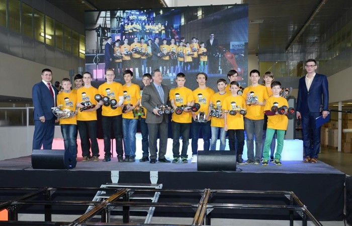 Победителям и призерам молодежных робототехнических соревнований Заместитель Министра науки и образования Российской Федерации Вениамин Каганов вручил дипломы и ценные призы.