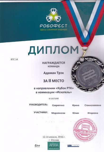 Юлин робот Адаман Трэк занял II место в соревнованиях Робофест-Кубок РТК-Искатель.