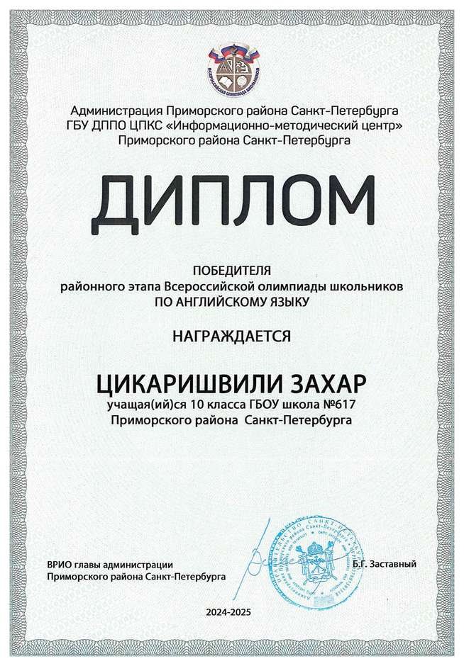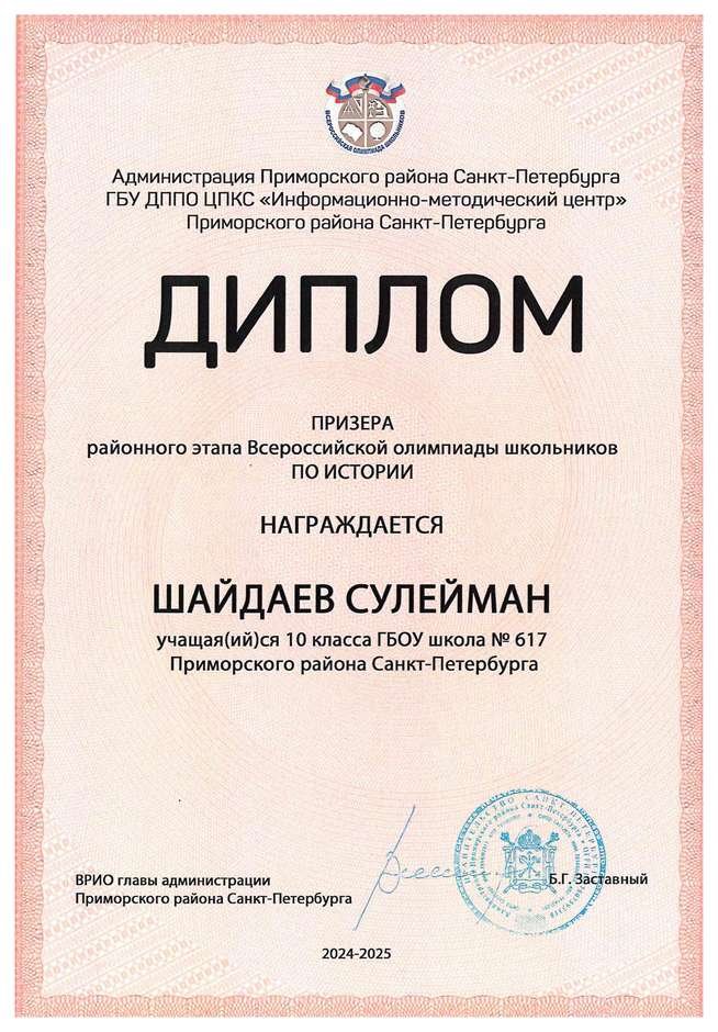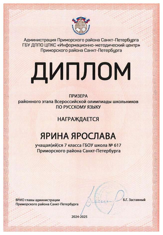 Дипломы всероссийской олимпиады школьников