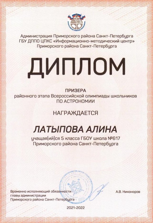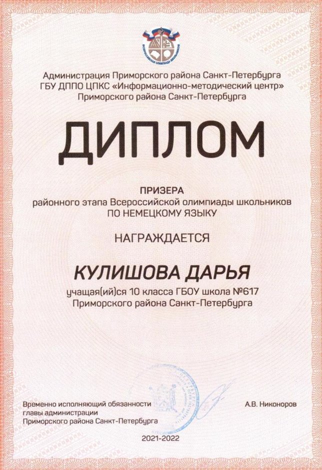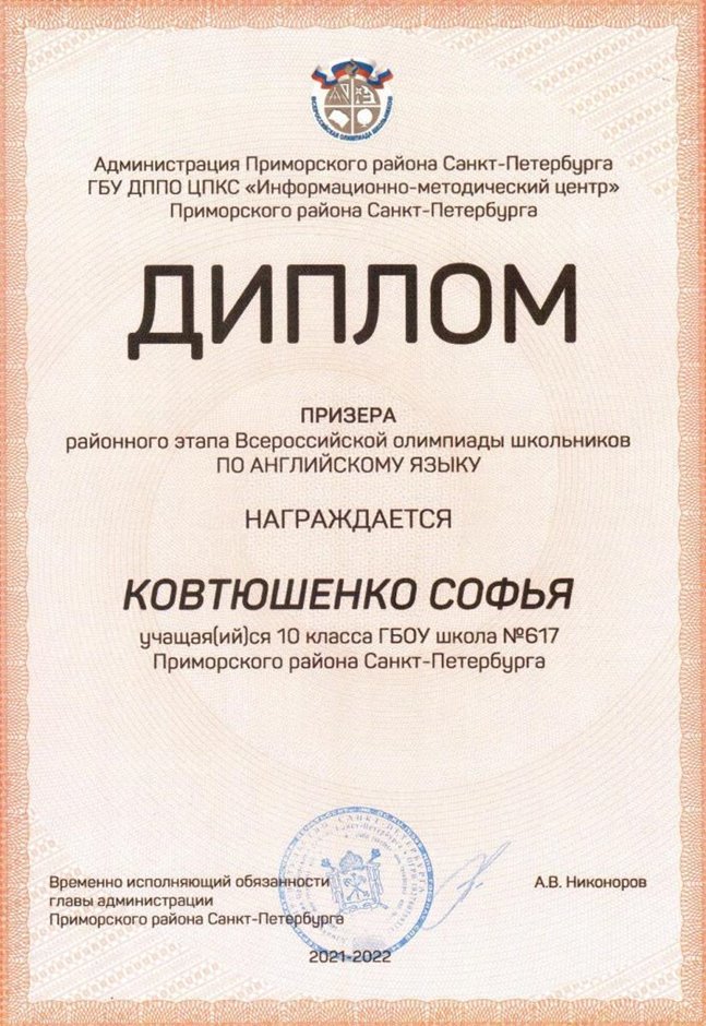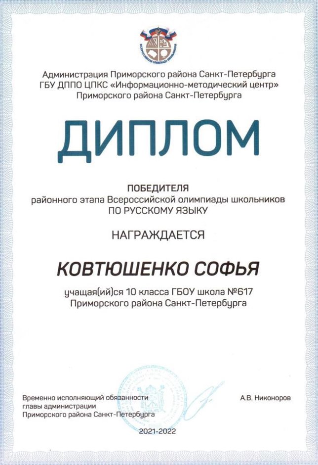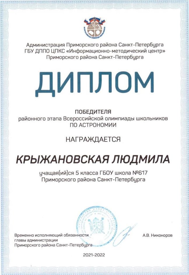 Дипломы Всероссийской олимпиады