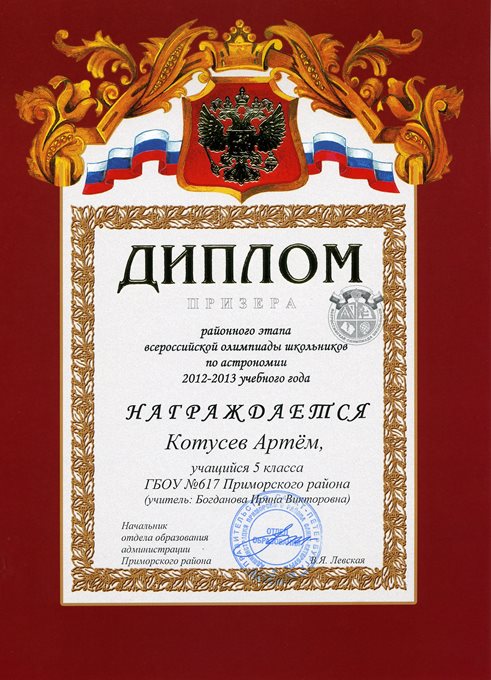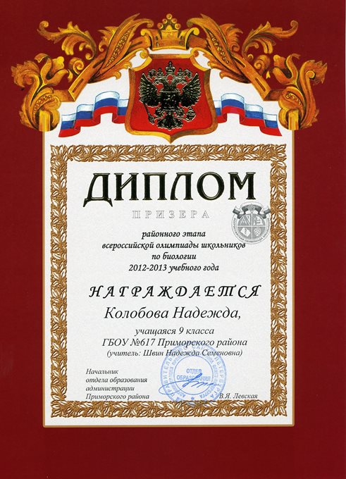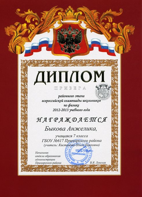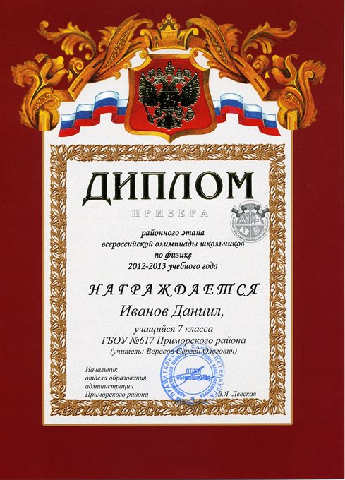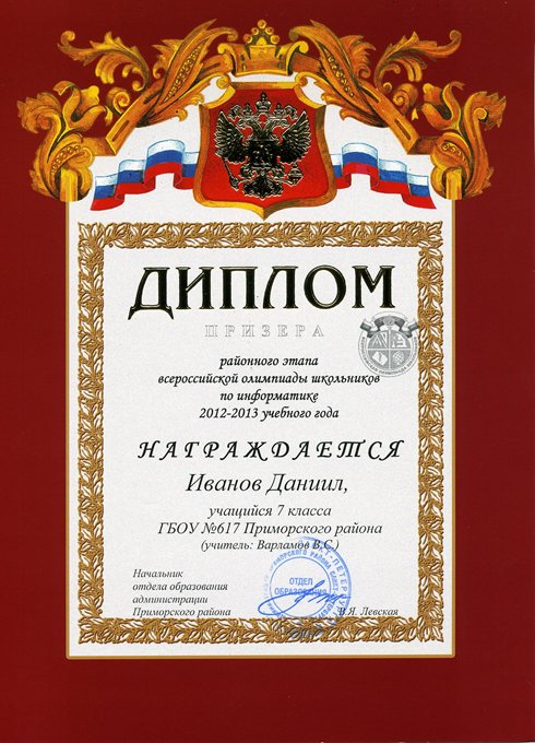 Дипломы Всероссийской олимпиады