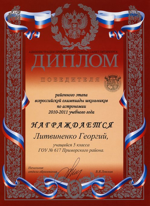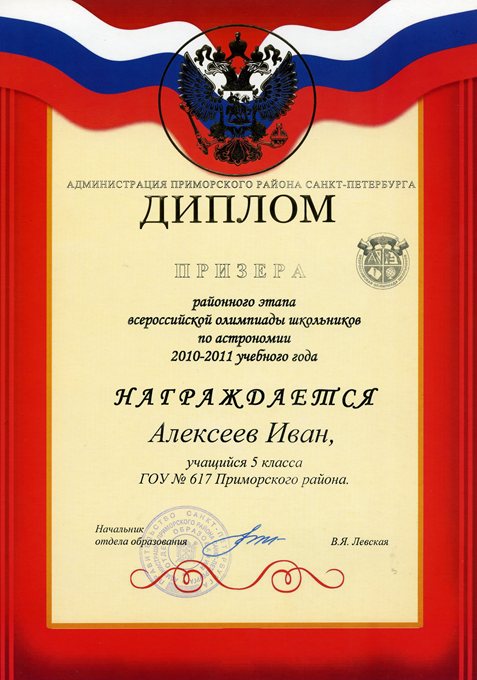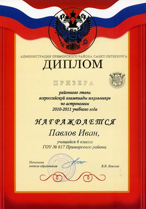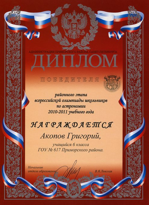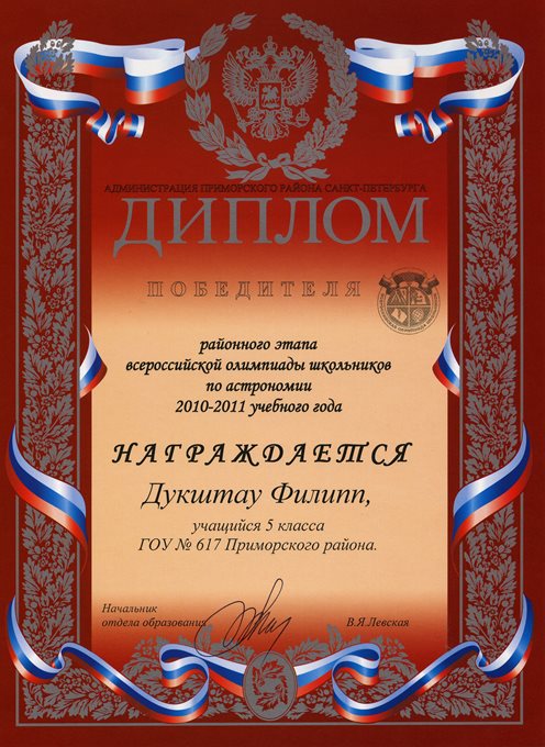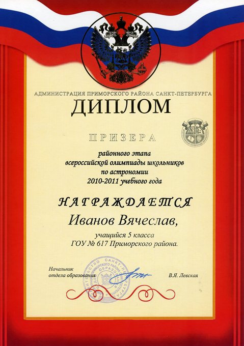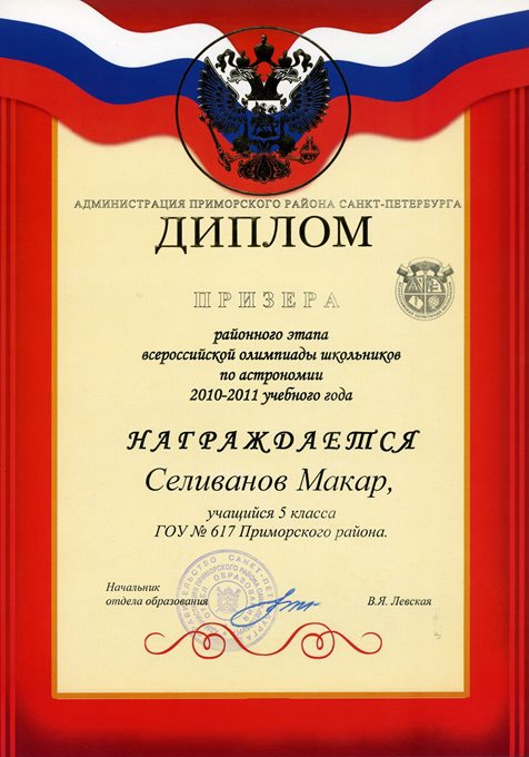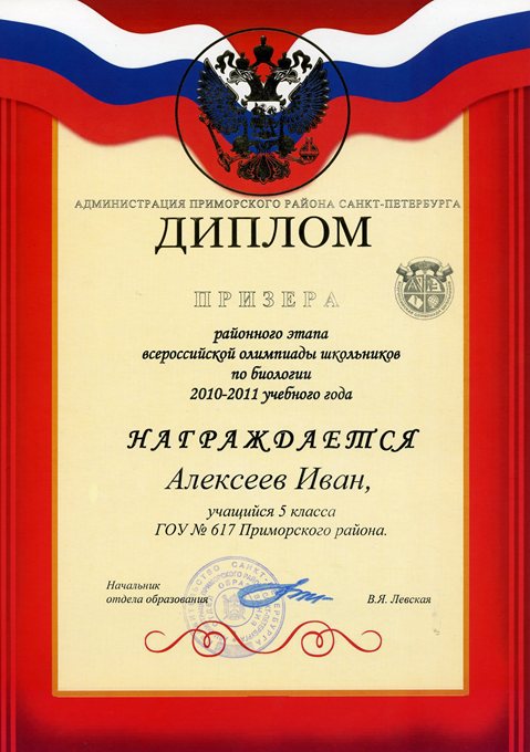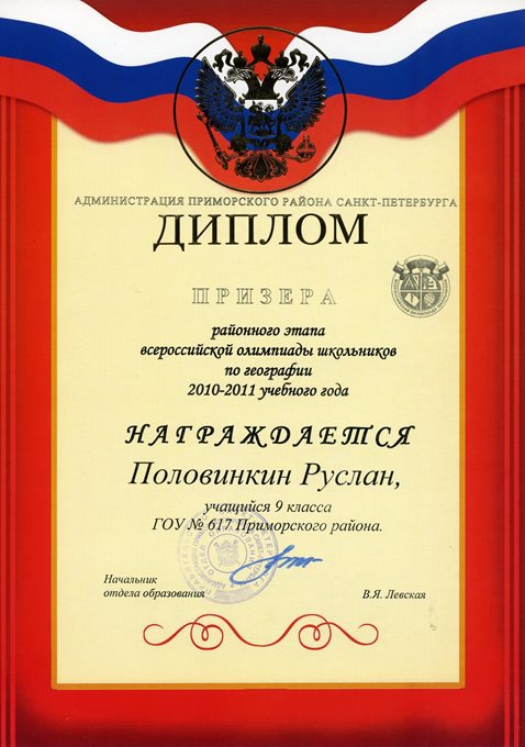 Дипломы Всероссийской олимпиады