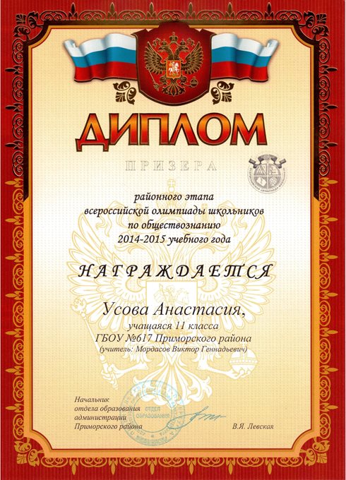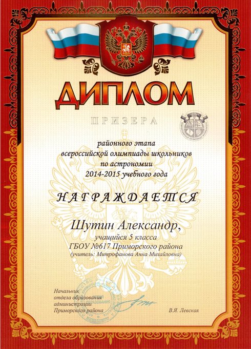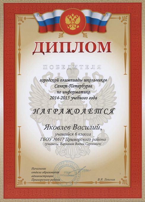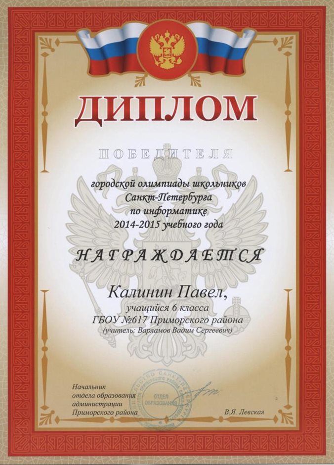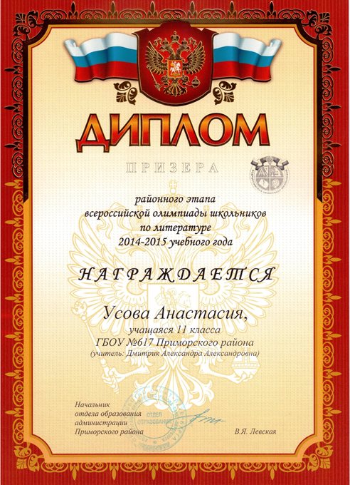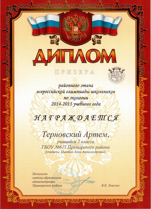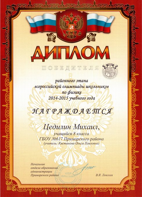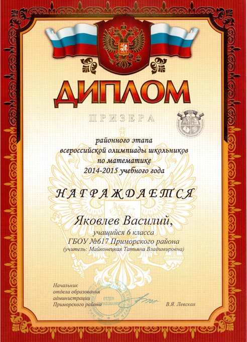Дипломы Всероссийской олимпиады
