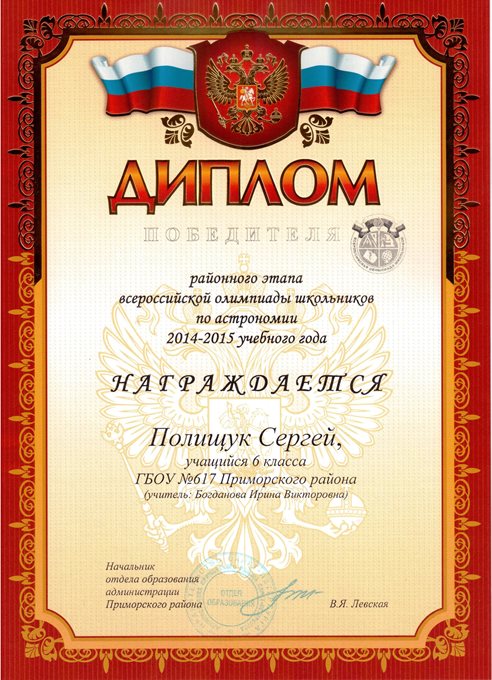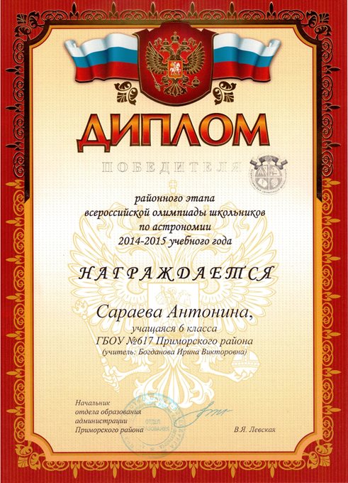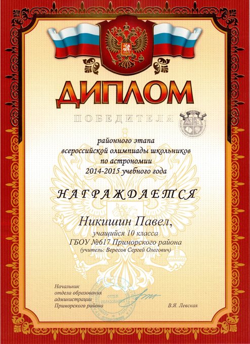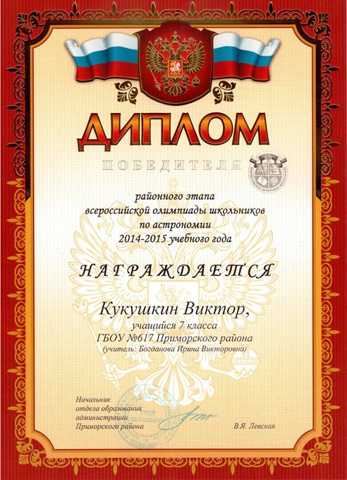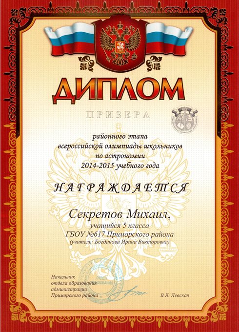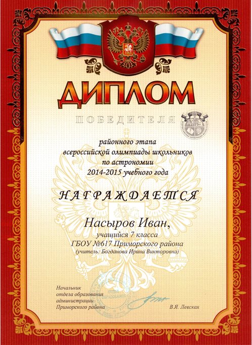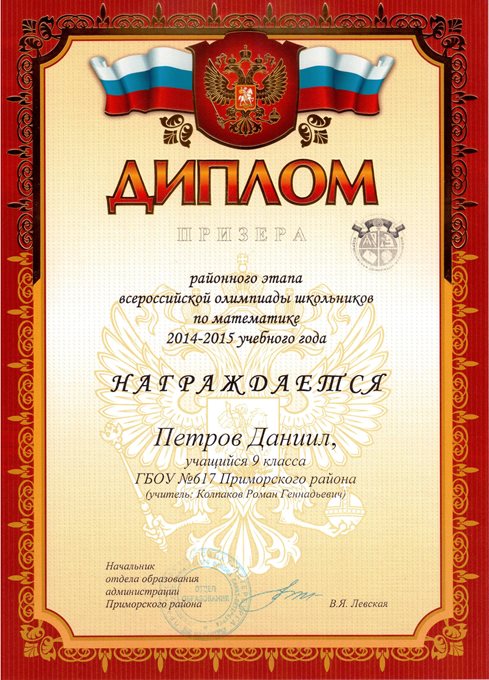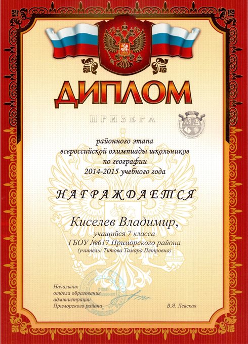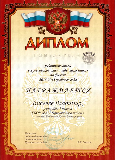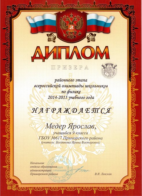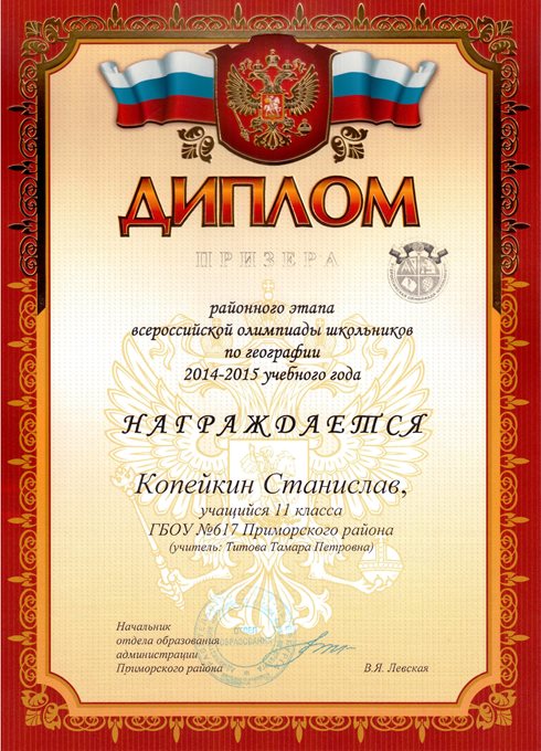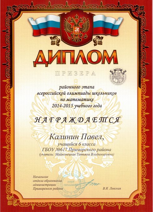 Дипломы Всероссийской олимпиады