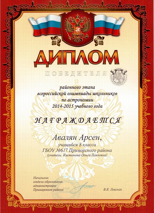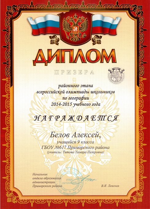 Дипломы Всероссийской олимпиады