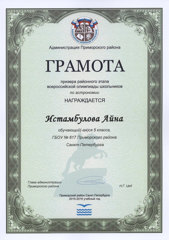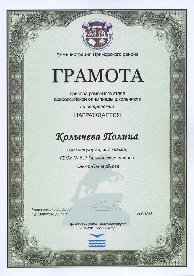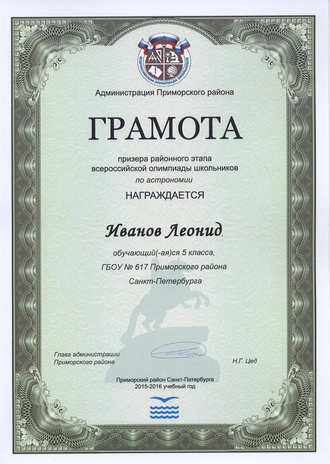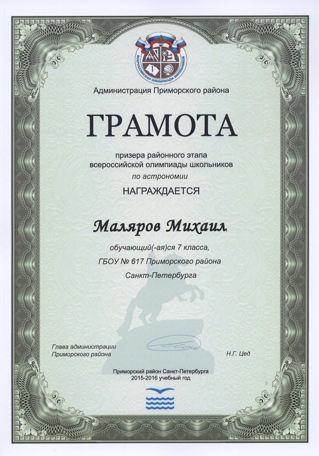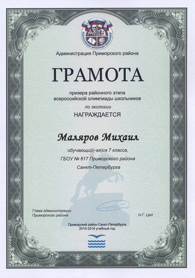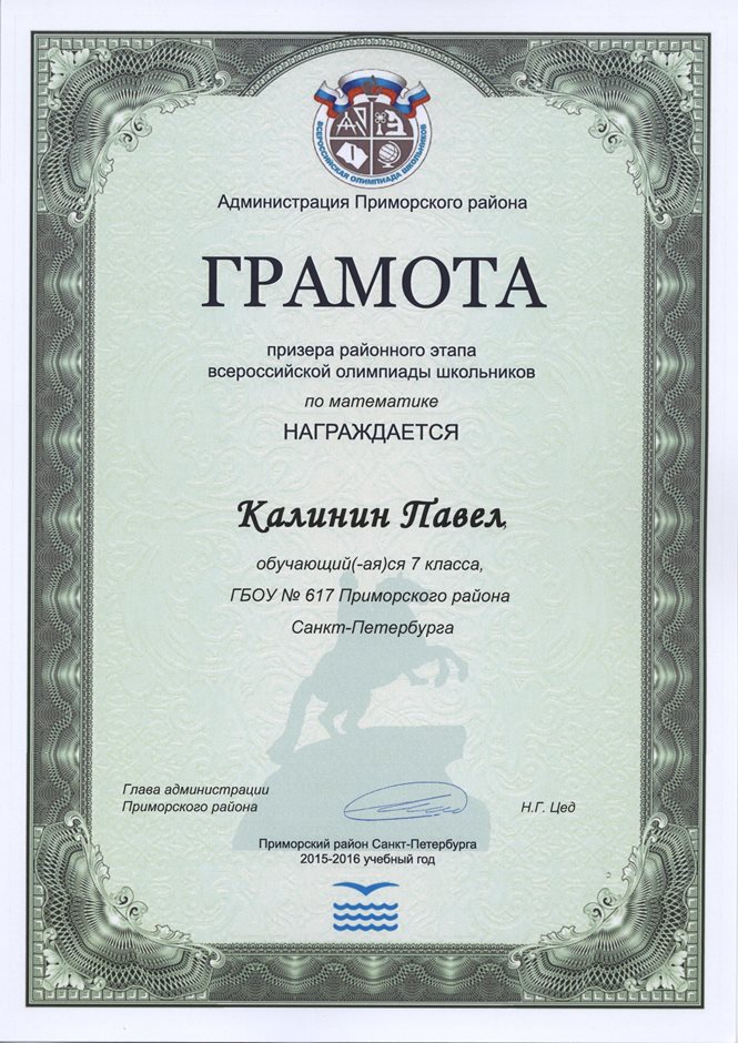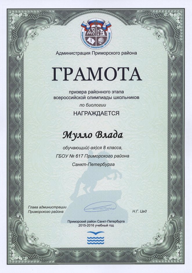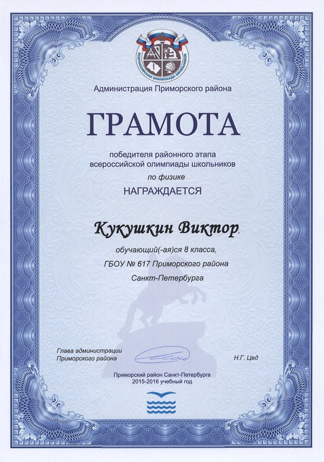Дипломы Всероссийской олимпиады