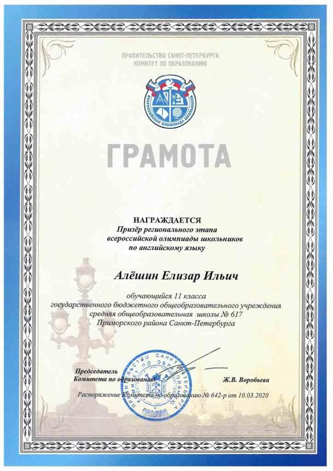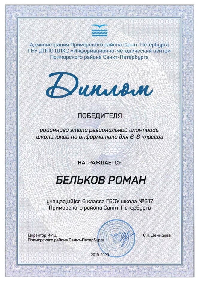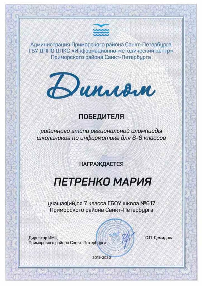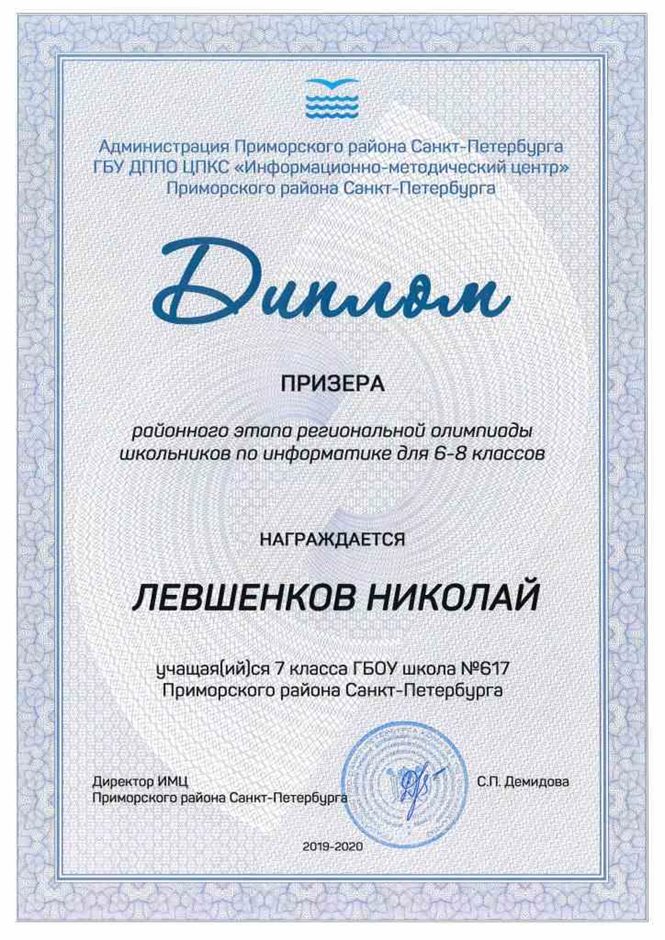 Дипломы Всероссийской олимпиады