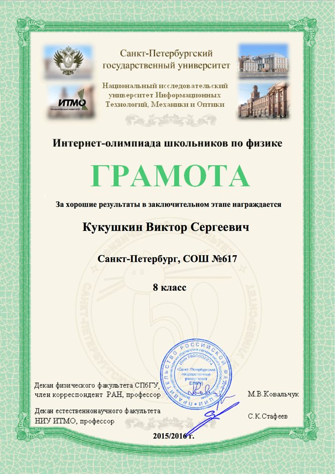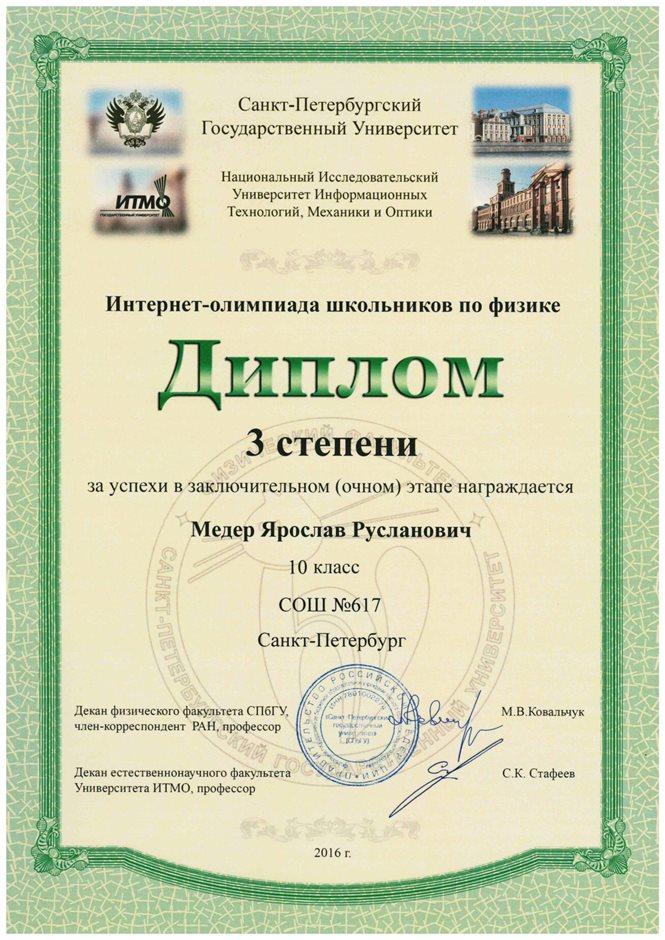 Дипломы интернет-олимпиады школьников по физике (РСОШ)