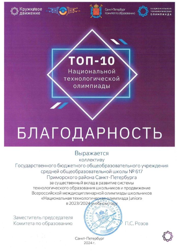 Да, наша школа заняла первое место в рейтинге школ города по количеству победителей и призеров! Ребята, которые присутствовали на торжественной церемонии, не знали этого факта, поэтому очень удивились и обрадовались. А ведь благодаря именно им ГБОУ школа № 617 Приморского района Санкт-Петербурга стала победителем!