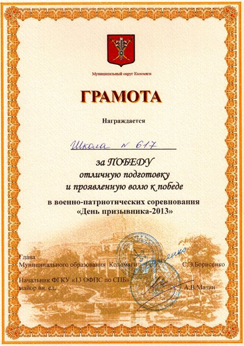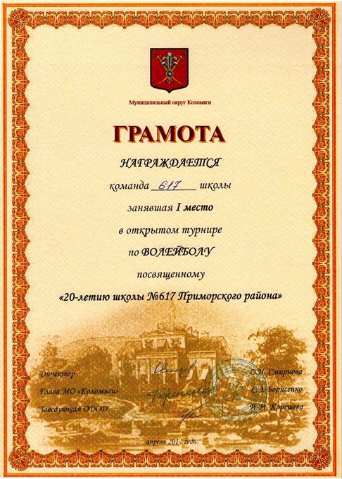 Грамоты школе, командам
