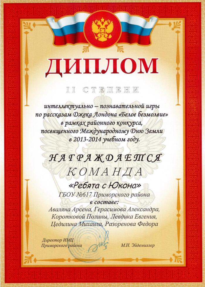 Районная интеллектуально - познавательная игра по страницам северных рассказов Джека Лондона "Белое безмолвие" состоялась 14 декабря 2016 года. Организаторами мероприятия выступили ИМЦ Приморского района Санкт-Петербурга и "Лингвистическая школа" №43, на базе которой состоялся конкурс.