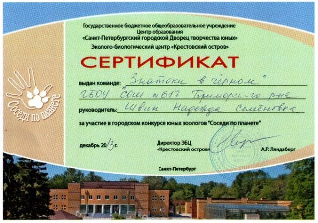 В Эколого-биологическом центре «Крестовский остров» ежегодно проходит традиционный конкурс юных зоологов «Соседи по планете». В конкурсе принимают участие команды из учреждений дополнительного образования и школ города. В ходе конкурса ребята посещают несколько игровых станций, где требуется проявить свои знания в области зоологии.