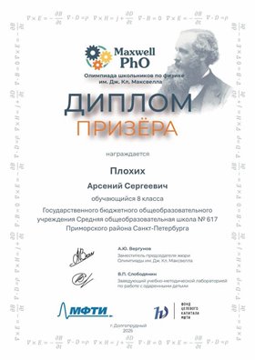 Плохих Арсений и Мельников Владислав - призёры всероссийской олимпиады по физике