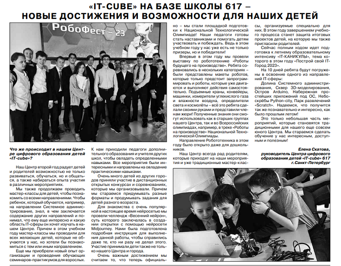 «IT-CUBE» на базе школы 617 – новые достижения и возможности для наших детей