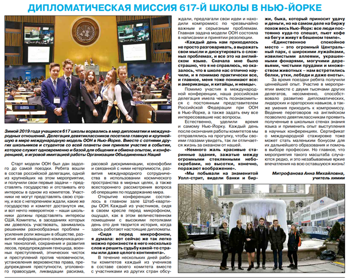 Дипломатическая миссия 617-й школы в Нью-Йрке
