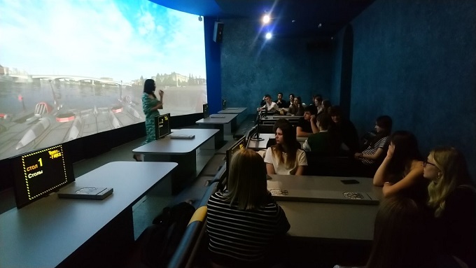 Захватывающая визуализация на огромном панорамном экране сопровождается графической и звуковой информацией. Во время программы посетители активно участвуют в процессе, принимая коллективные решения и отвечая на вопросы-тесты.