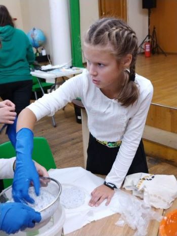 🌿 На мастера–классе «Бумажное дело» пятиклассники изготавливали бумагу из накопленных чеков. Продлевать вещам жизнь и вторично их перерабатывать— это залог нашего общего зеленого благополучия.