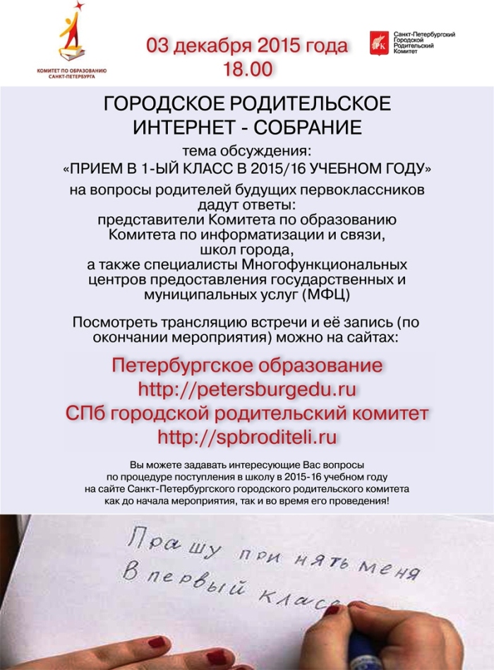 Городское родительское интернет-собрание (1 кл)
