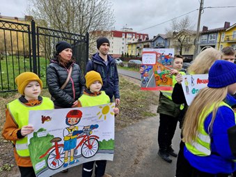 Юные инструкторы собрались вместе и взяли в руки плакаты с правилами безопасного движения на велосипеде и самокате. Они с энтузиазмом рассказывали другим школьникам, как важно быть внимательными на дороге и соблюдать правила.