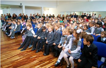 В этом учебном году в нашей школе появилось 127 новых учеников! Улыбчивые, серьезные, сообразительные и озорные наши первоклашки! Спустя месяц учебы в их честь был организован традиционный праздник "Посвящение в первоклассники". На празднике ребята пели, танцевали, читали стихи и, конечно, давали торжественную Клятву Первоклассника!