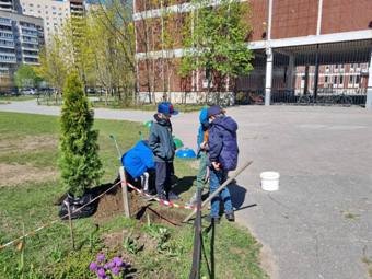 По всей России проходит акция «Посади дерево». Ученики 2а класса подключились к этой акции и посадили туи. Мы хотим, чтобы участок школы №617 был красивым и зелёным, чтобы было много различных деревьев, а значит - много кислорода.