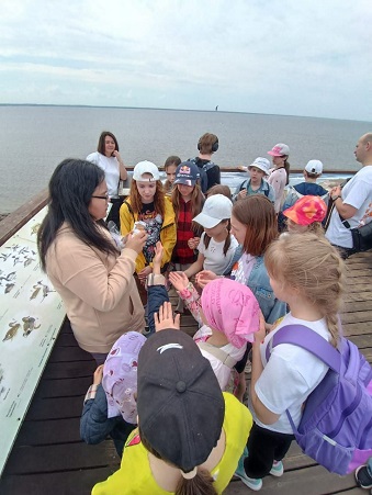 Кульминацией нашей экопросветительской экскурсии было посещение наблюдательной вышки со смотровыми площадками, откуда открываются потрясающие виды на побережье и заказник «Западный Котлин». Здесь ребята узнали о пернатых обитателях заповедной территории и научились их различать. А в дополнение ко всему изученному прошли геоботанический квест.