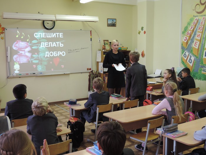 В рамках дня добра и уважения 30 сентября в школе прошли классные часы на темы: "Спешите делать добро" 1-4 классы, "Жестокость, равнодушие и сочувствие" 5-11 классы.